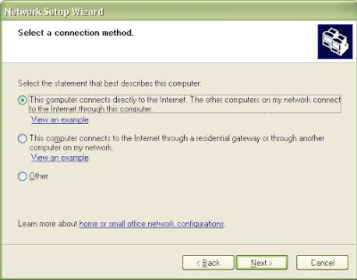 - Then press OK... Wow.. almost done!!!! One last step.. Go to Control Panel -> Network Set Up Wizard. Click Next until you find this window shown below. Set the option like what the picture below shows. Choose the first option :D